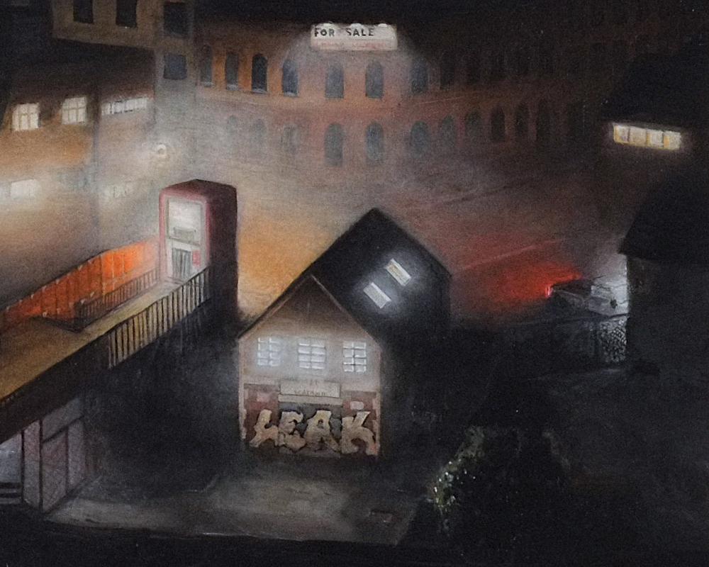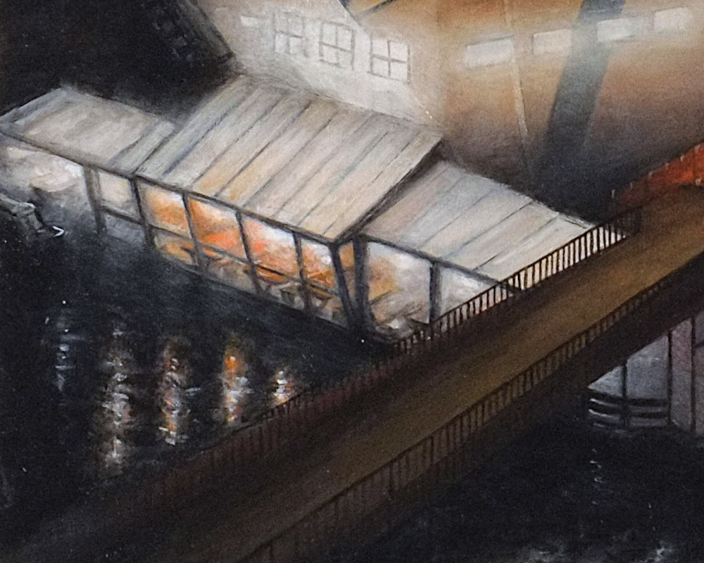 LAST LIGHTS ACROSS THE RIVER LEE is the first of six works which form Lawrence Brand’s 2023-2024 series ‘SIX VISIONS OF HACKNEY WICK’.